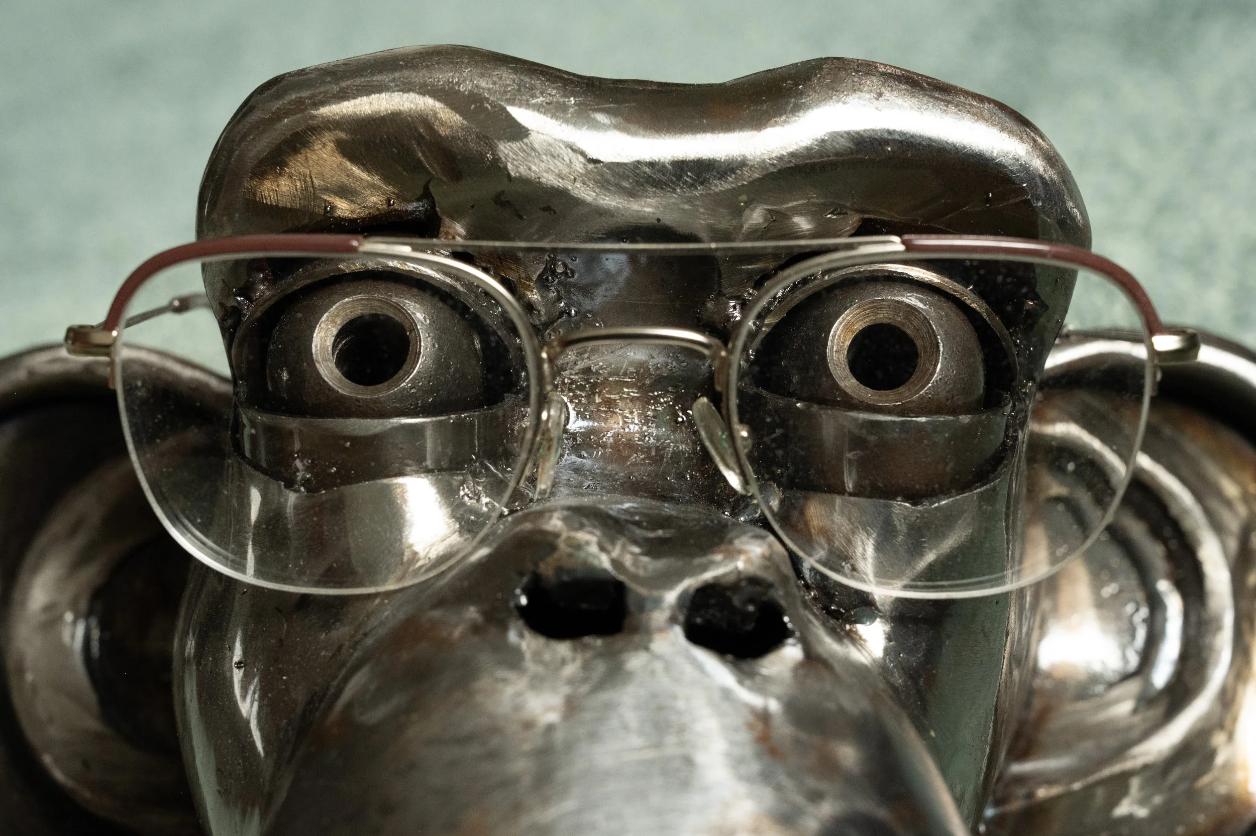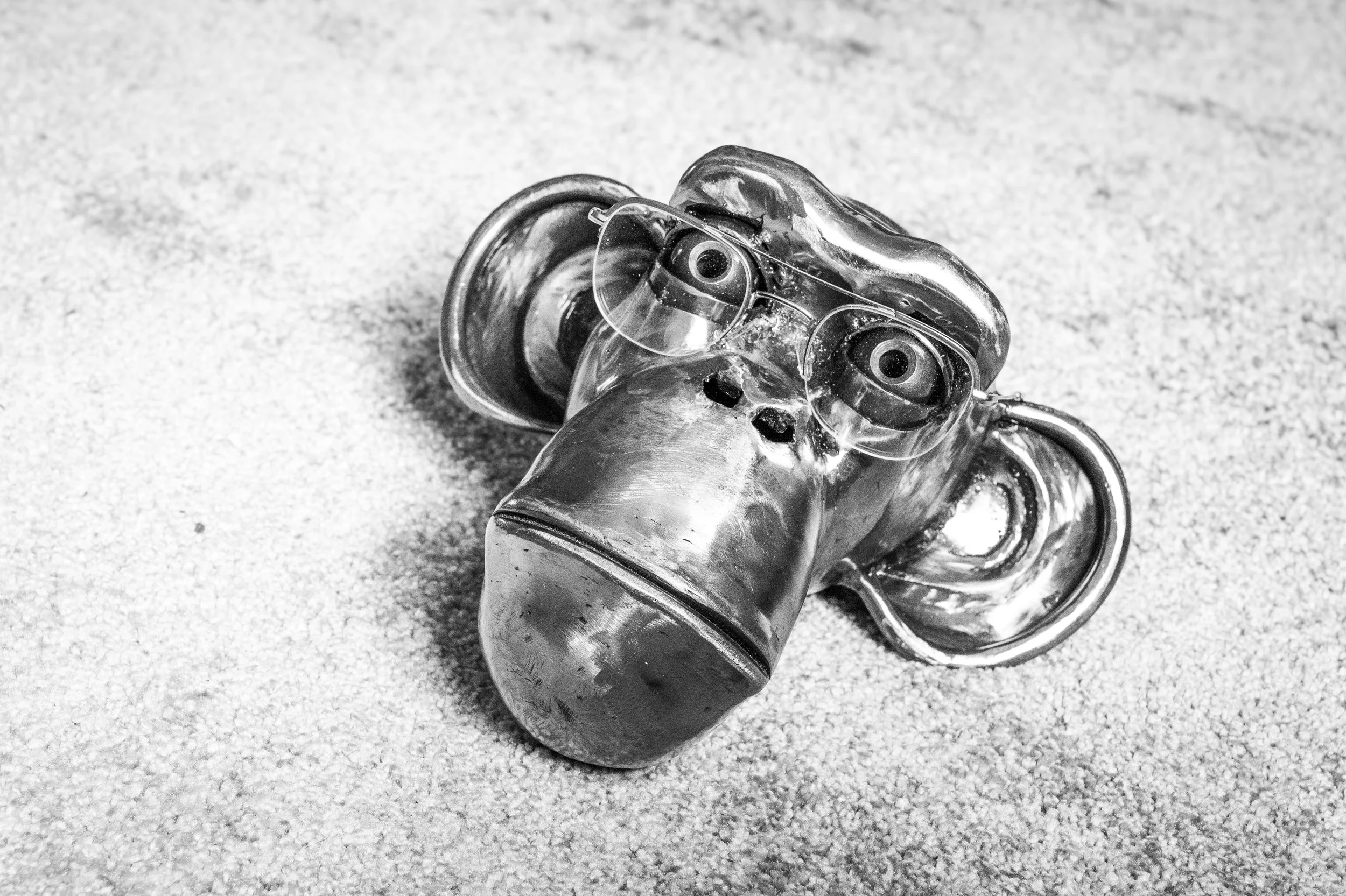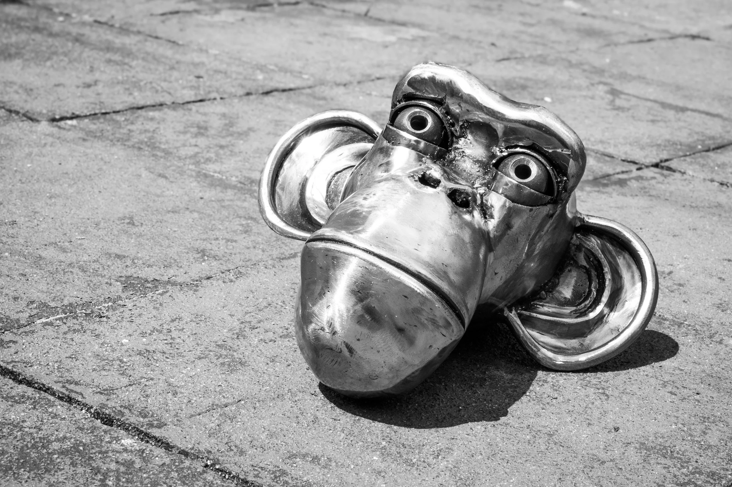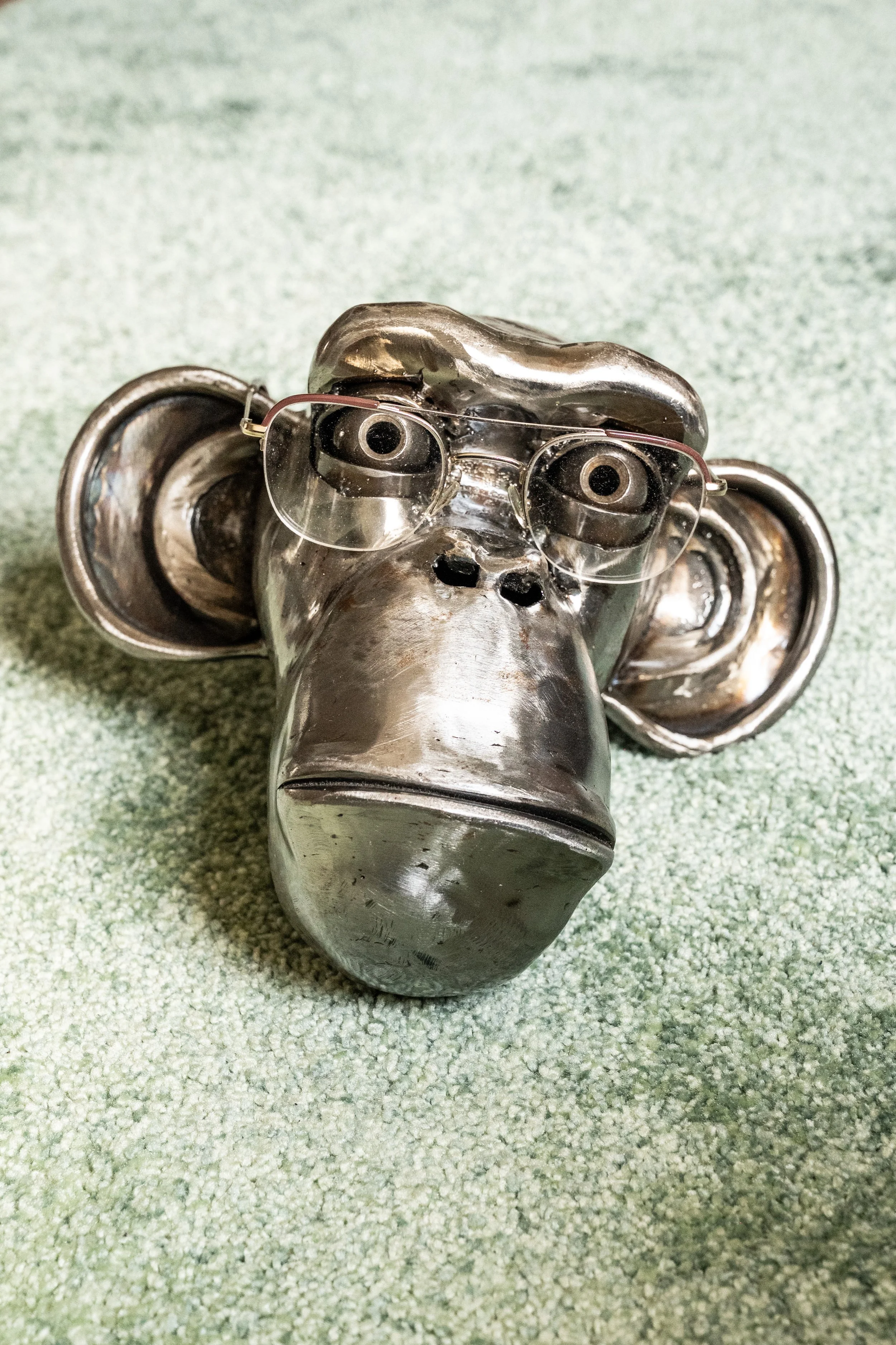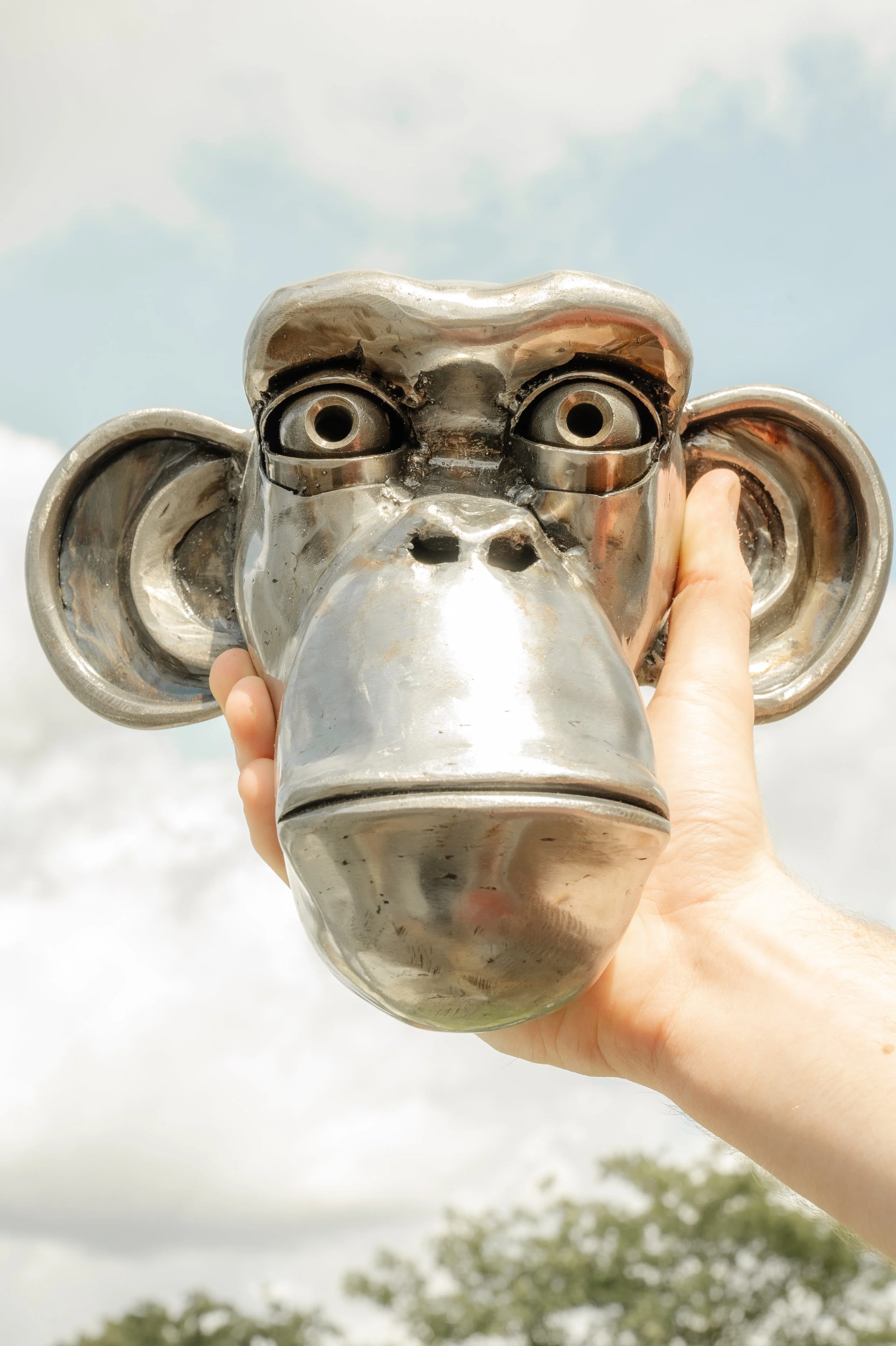 Barbara is a monkey head made out of discarded sheet metal and a few pieces of solid steel (the eyes, lips and eyebrows are made of solid steel) Everything about Barbara is handmade and made with love.